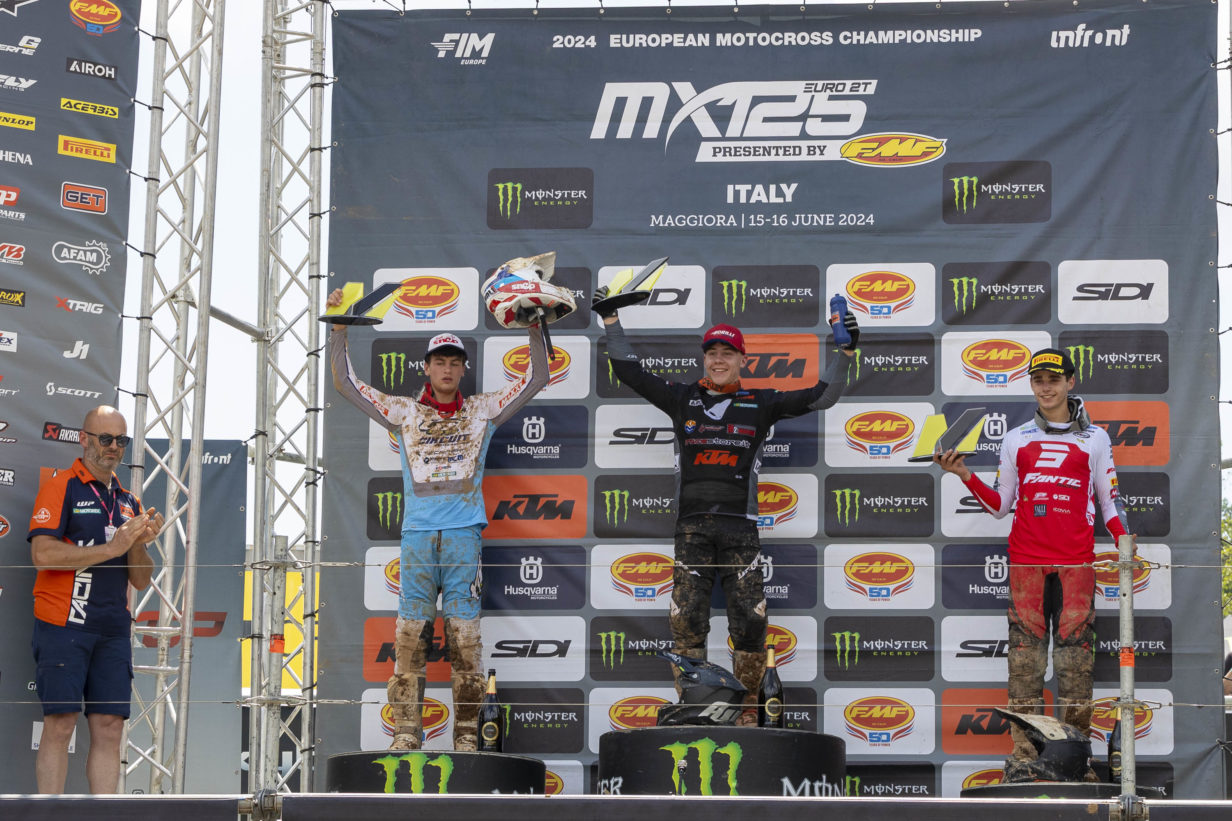 Finalmente il GP d’Italia ci ha visto tra i protagonisti, Brando Rispoli è salito sul secondo gradino del podio nella EMX125 portando in alto i colori della TM moto. Buona prova anche per Yago Martinez a punti in entrambe le manche del Mondiale MX2. Il Maggiora Park ha offerto nel fine settimana qualsiasi tipo di condizione meteo. Il fango e la pioggia del sabato ha lasciato spazio al sole ed al caldo della domenica.